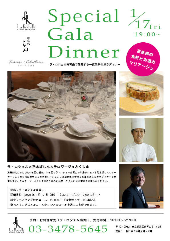 【開催終了】ラ・ロシェル南青山での特別ディナー会(1月17日)のメニューが決まりました!