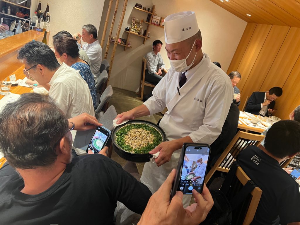 〆のご飯は「あさりと新生姜の釜炊き」+生詰吟醸酒薄紅葉