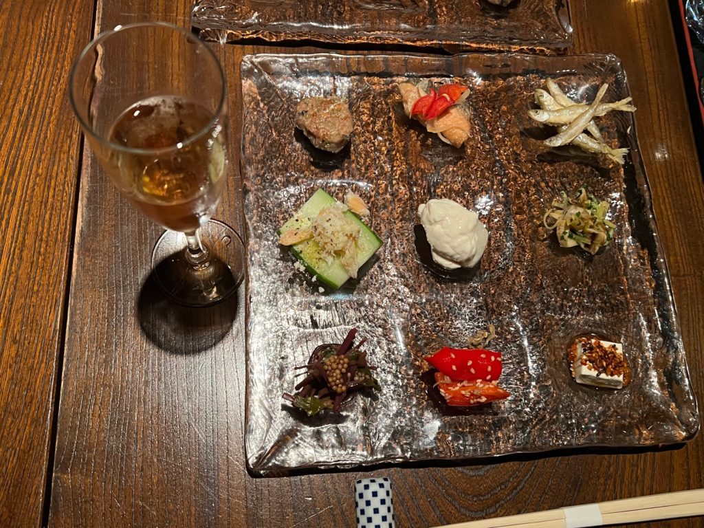 「りとりいと」名物 前菜9品+かわうちワインのロゼ・ペティアン